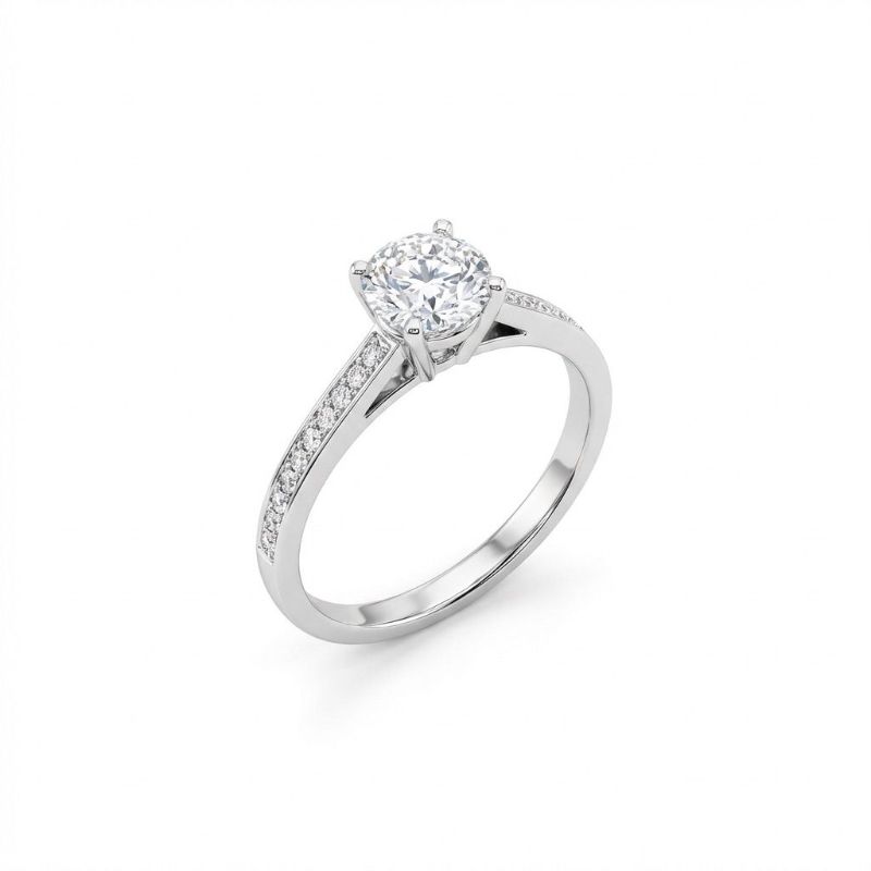 Anel solitário Cravejado Moissanite Prata 925 - Banho de Ródio