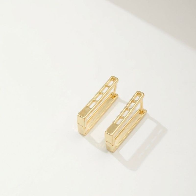 Argola Articulada Retangular Banhada Ouro 18k e Prata