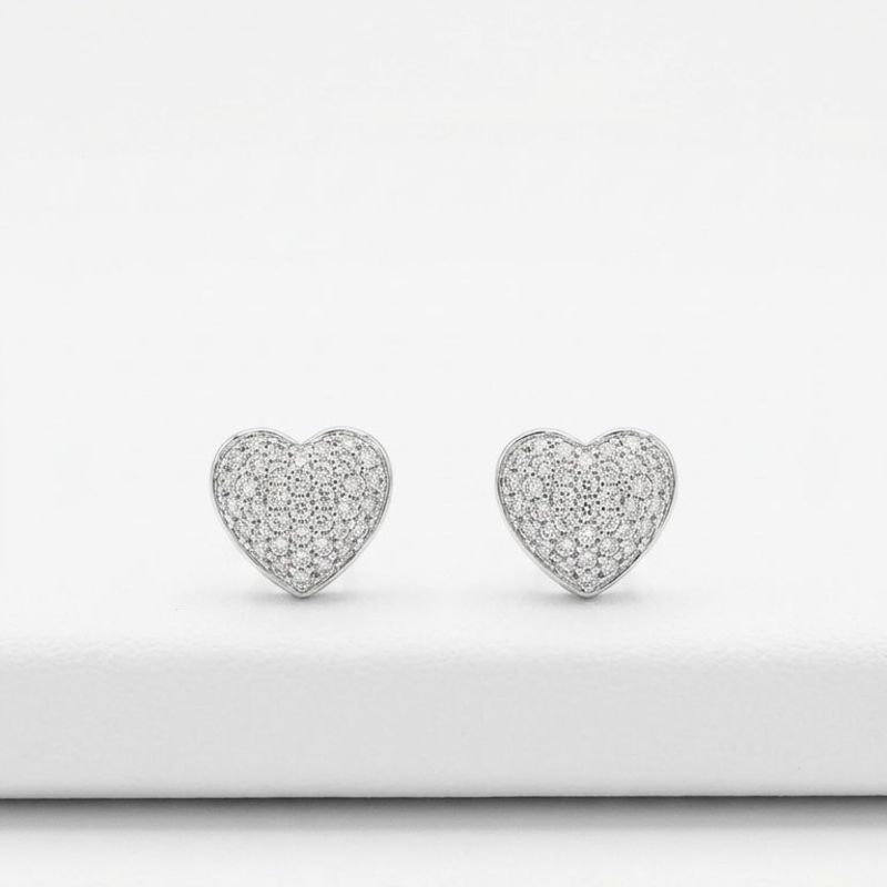Brinco Prata 925 Moissanite - Coração Cravejado