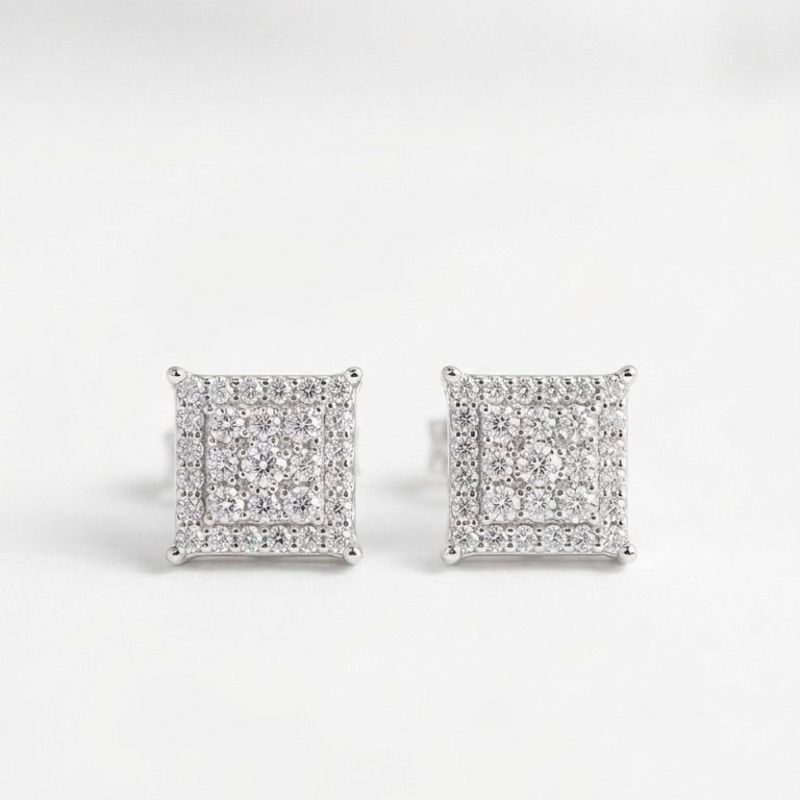 Brinco Prata 925 Moissanite - quadrado 7x7
