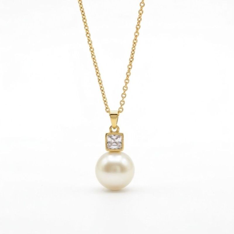 Colar Pérola com Zircônia Banho Ouro 18k e Banho Prata