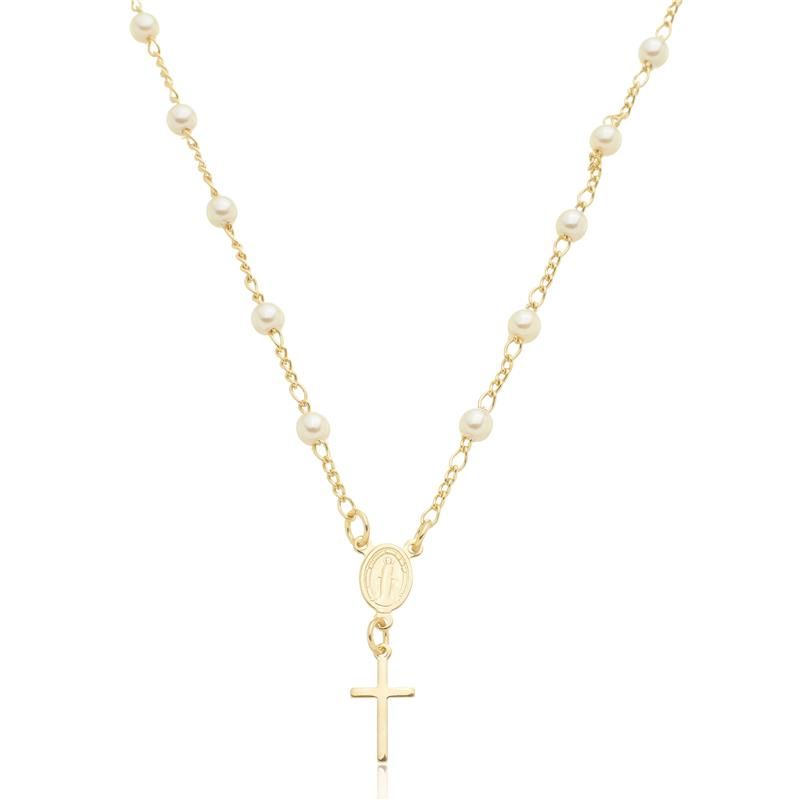 Pulseira com Perólas e Cruz Banhada Ouro 18k e Prata